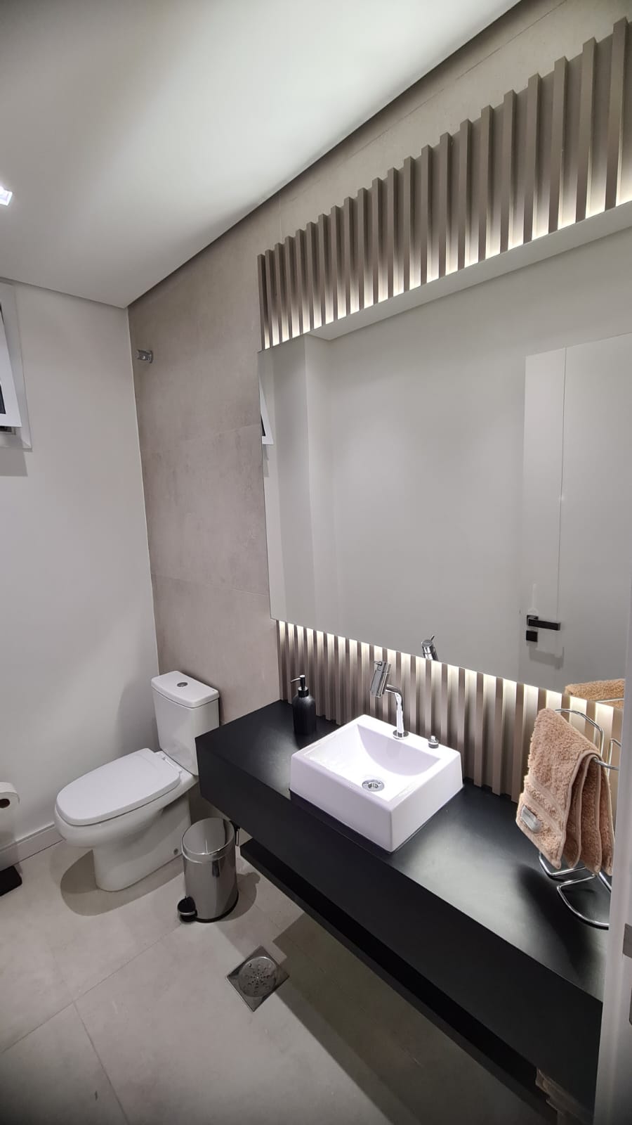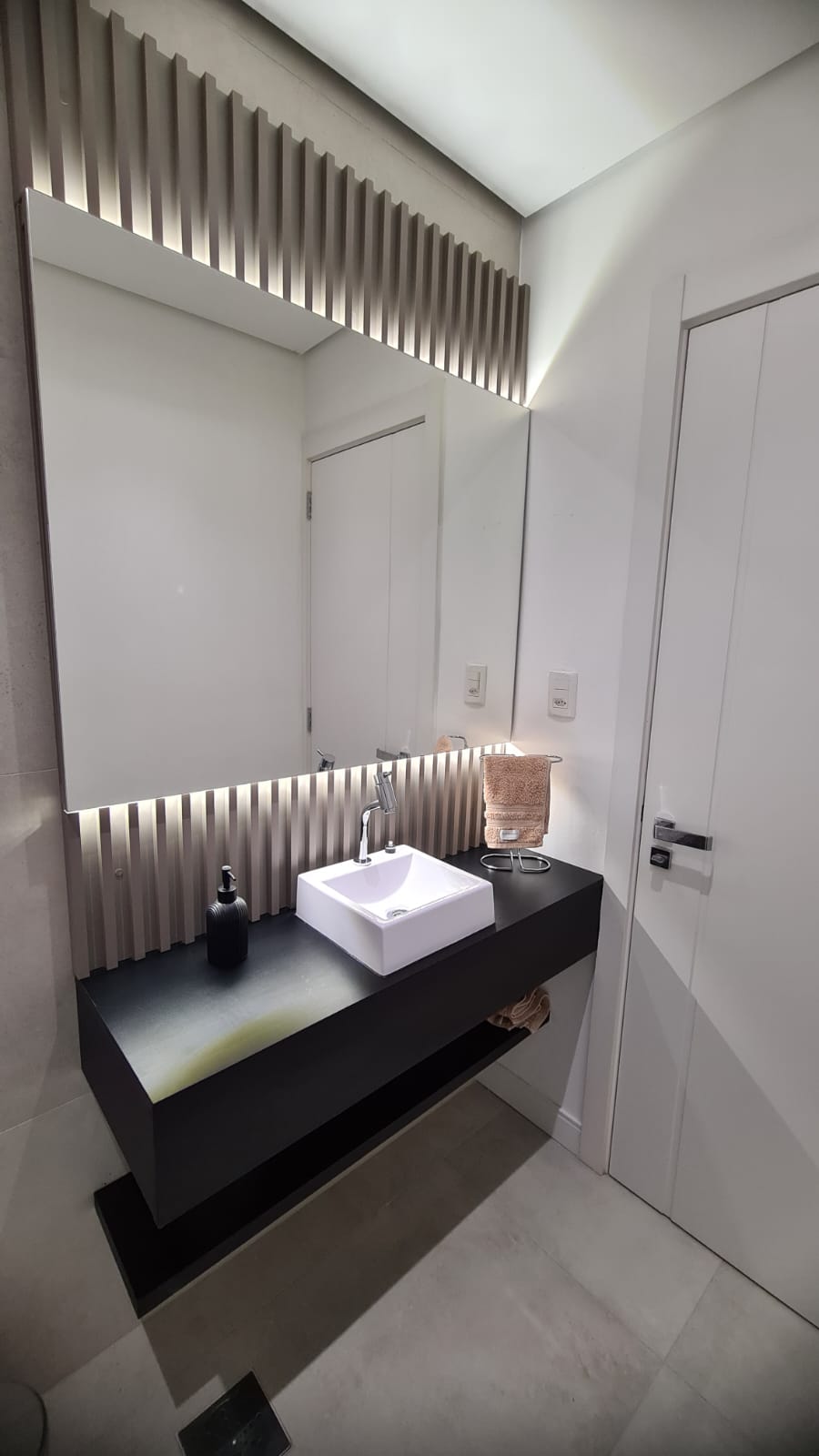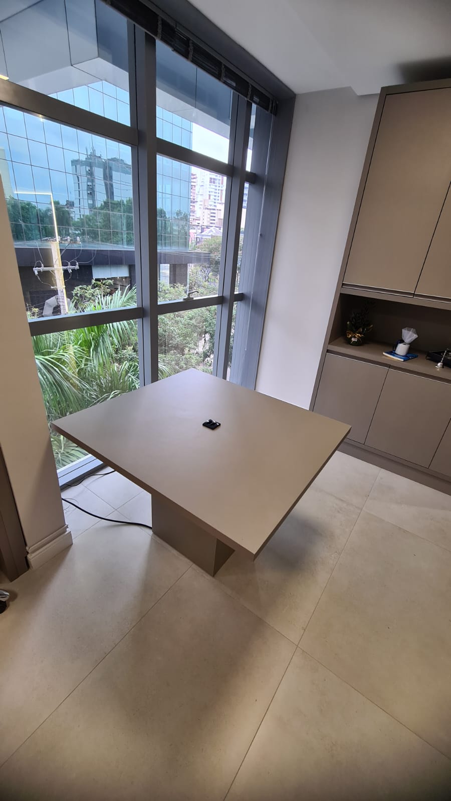 O projeto incluiu o uso de lâmpadas Di Croica da Cristallux, fitas de LED para realçar os detalhes da marcenaria e painéis de LED quadrados da Avant, selecionados para oferecer a máxima eficiência luminosa com o melhor custo-benefício. A execução do projeto foi realizada dentro de um prazo muito ágil, com uma abordagem estratégica que permitiu a conclusão das etapas de infraestrutura elétrica e de gesso inicialmente, seguidas pela instalação da marcenaria e vidraçaria, e finalmente a fase de posicionamento e centralização dos pendentes em relação aos móveis, garantindo uma integração perfeita com o design do espaço.